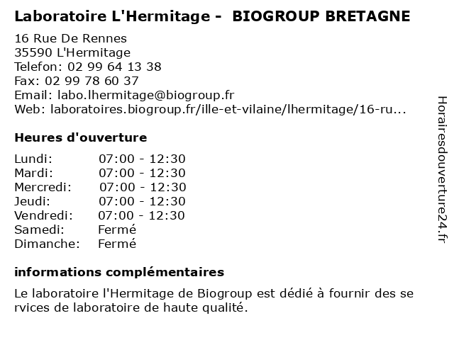 Termes de recherche pour Laboratoire L'Hermitage - BIOGROUP BRETAGNE:bretagne, laboratoire, l'hermitage, biogroup, dépistages, laboratoire de diagnostic |