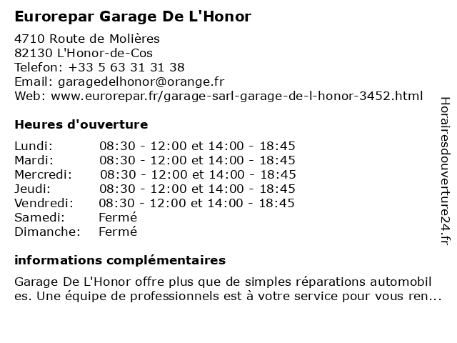 Termes de recherche pour Eurorepar Garage De L'Honor:garage, de, eurorepar, l'honor |