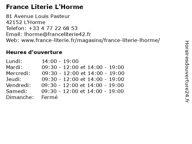 | Mardi | 09:30-12:00 et 14:00-19:00 |