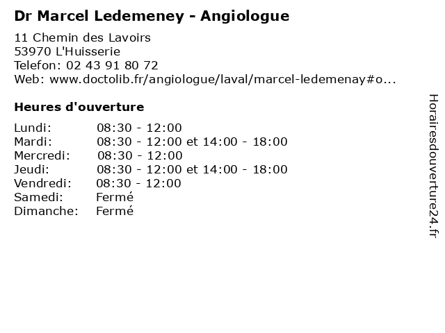 1 Dr Marcel Ledemeney - Angiologue (Distance: 6,93 km) 36 Rue Emile Brault, 53000 Laval angiologie, angiologue, dr, ledemeney, marcel, vaisseaux, vasculaire 2 Dr Valmont Richard - Angiologue (Distance: 0,00 km) 11 Chemin des Lavoirs, 53970 L'Huisserie angiologue, docteur, dr, medecin, richard, soins, valmont 3 Dr Floriane Catillon - Angiologue (Distance: 0,00 km) 11 Chemin des Lavoirs, 53970 L'Huisserie angiologie, angiologue, catillon, dr, floriane, vaisseaux, vasculaire 4 Dr Marcel Serhal - Radiologue (Distance: 5,68 km) 4 Avenue des Français Libres, 53000 Laval consultation, docteur, dr, marcel, med, médecin, radiologue, serhal, traitement 5 École Elémentaire Publique Marcel Pagnol (Distance: 5,81 km) . Rue Vincent Auriol, 53000 Laval cours, education, elémentaire, marcel, pagnol, publique, services, école, élémentaire 6 École Maternelle Publique Marcel Pagnol (Distance: 5,91 km) 30 Place de la Commune, 53000 Laval cours, education, marcel, maternelle, pagnol, publique, services, école |