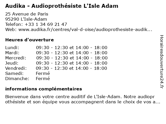 Termes de recherche pour Audika - Audioprothésiste L'Isle Adam:l'isle, adam, appareil auditif, audika, audioprothésiste, specialiste audition, audiologiste, centre auditif |