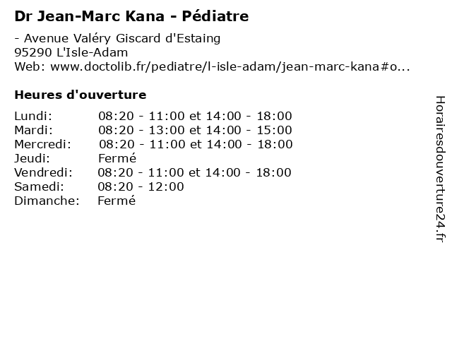 | Vendredi | 08:20-11:00 et 14:00-18:00 |