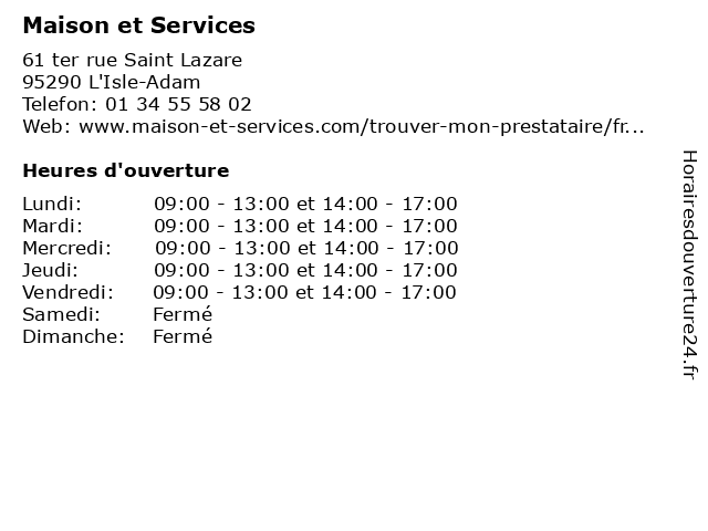 1 Maison Et Services (Distance: 10,20 km) 17 rue de Paris, 95320 Saint-Leu-la-Forêt agence, aide, domicile, et, maison, services 2 Maison et Services (Distance: 10,39 km) 200 Chaussée Jules Cezar, 95250 Beauchamp cote jardin, et, maison, services 3 Maison Et Services (Distance: 10,55 km) 200 Chaussée Jules César, 95250 Beauchamp et, maison, services 4 Maison Et Services (Distance: 15,63 km) 1 Rue de la République, 95270 Chaumontel agence, aide, domicile, et, maison, services 5 Maison Et Services (Distance: 16,65 km) 31 Rue Charles de Gaulle, 95170 Deuil-la-Barre et, maison, services 6 Maison Et Services (Distance: 17,03 km) 10 rue Michel Bléré, 60260 Lamorlaye agence, aide, domicile, et, maison, services |