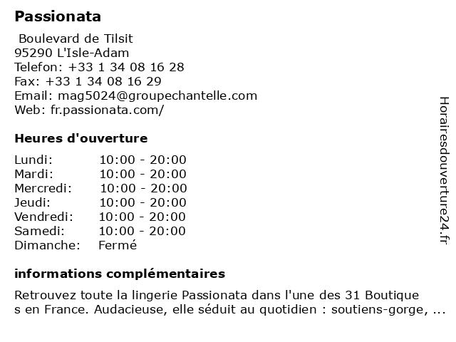 1 Passionata (Distance: 23,53 km) 110 Avenue de l'Europe, 60180 Nogent sur Oise beaute, boutiques, brasserie, cache, chaussures, concorde, deco, enfants, le, mode femme, mode hommes, passionata, restaurant, rocher, sport 2 Passionata (Distance: 25,29 km) 23 rue Madeleine, 93300 Aubervilliers fashion, femme, homme, lingerie, passionata 3 Passionata (Distance: 26,58 km) 23 Rue Madeleine Vionnet, 93300 Aubervilliers alimentation, beauté & sante, culture & loisirs, enfants, high-tech, maison & déco, mode, passionata, restaurants 4 Passionata (Distance: 28,35 km) 13 Rue d'Amsterdam, 75008 Paris cafe, chaussures, enfants, homme, mode femme, passionata, restaurant, service, sport 5 Passionata (Distance: 28,40 km) 1 Cour de Rome, 75008 Paris alimentation, beauté & sante, culture & loisirs, enfants, high-tech, maison & déco, mode, passionata, restaurants 6 Passionata (Distance: 30,14 km) 101 Porte Berger, 75045 Paris chaussures, lingerie, mode enfant, mode femmes, mode hemmes, passionata, sport |