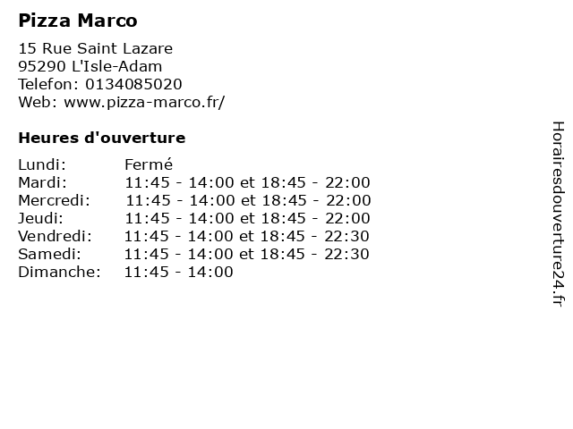 | Samedi | 11:45-14:00 et 18:45-22:30 |