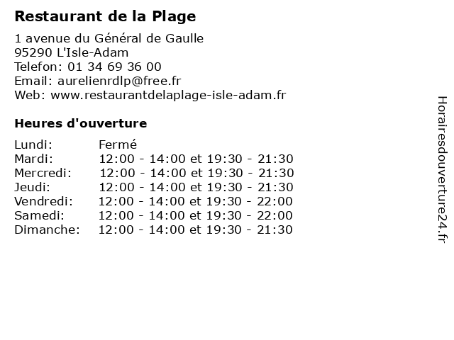 | Vendredi | 12:00-14:00 et 19:30-22:00 |