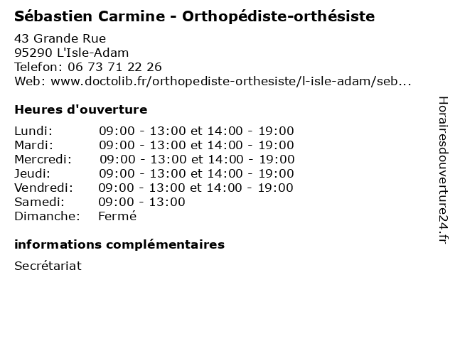 | Lundi | 09:00-13:00 et 14:00-19:00 |