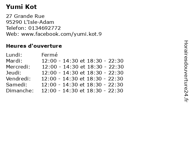 | Jeudi | 12:00-14:30 et 18:30-22:30 |