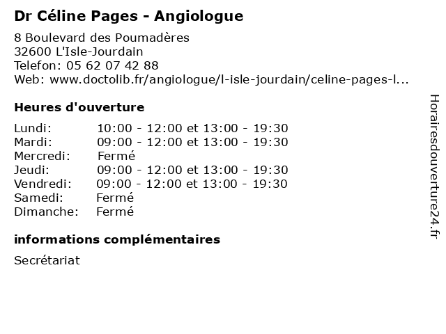 Termes de recherche pour Dr Céline Pages - Angiologue:céline, dr, pages, angiologue, angiologie, vasculaire, vaisseaux |