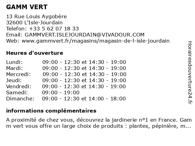 | Dimanche | 09:00-12:30 et 14:00-18:00 |