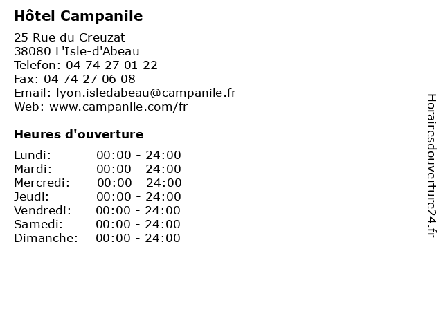 | Dimanche | 00:00-24:00 |