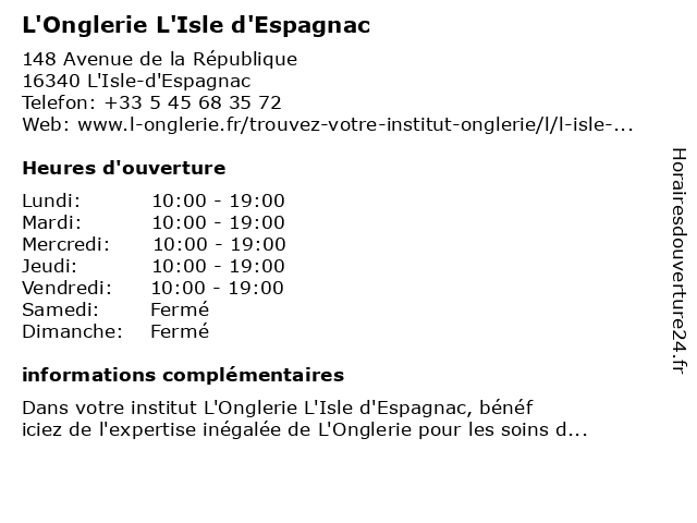 | Lundi | 10:00-19:00 |