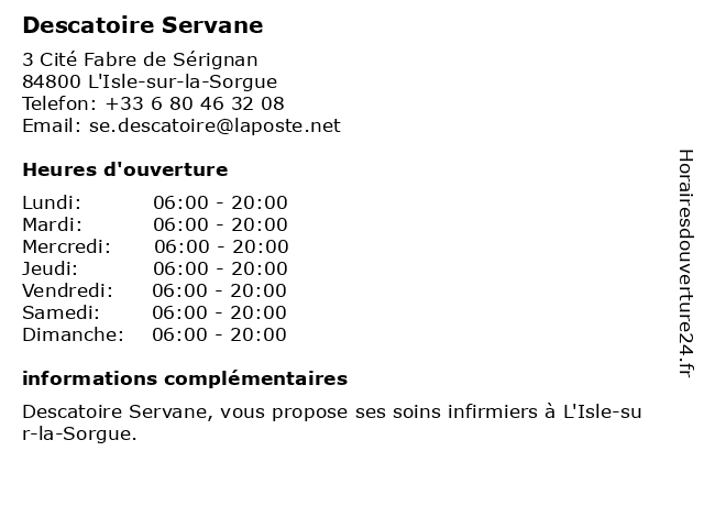 | Samedi | 06:00-20:00 |