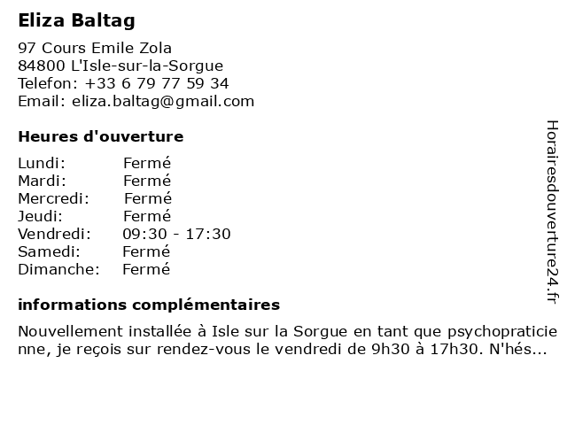 | Samedi | Fermé |