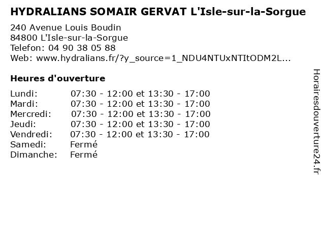 Termes de recherche pour HYDRALIANS SOMAIR GERVAT L'Isle-sur-la-Sorgue:la, sur, l'isle, sorgue, gervat, hydralians, somair |