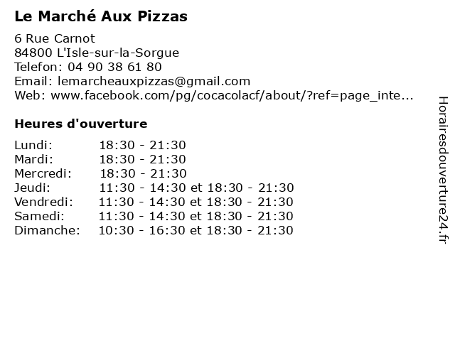 | Dimanche | 10:30-16:30 et 18:30-21:30 |