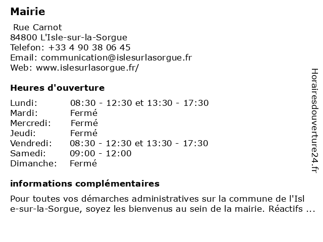 | Lundi | 08:30-12:30 et 13:30-17:30 |