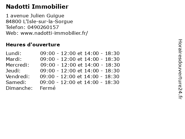 | Samedi | 09:00-12:00 et 14:00-18:30 |