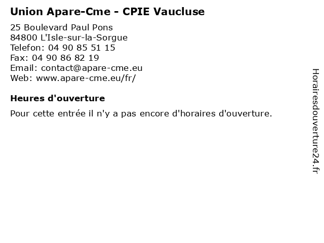 | Appeler Union Apare-Cme - CPIE Vaucluse | |