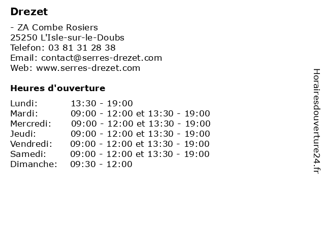 | Mercredi | 09:00-12:00 et 13:30-19:00 |