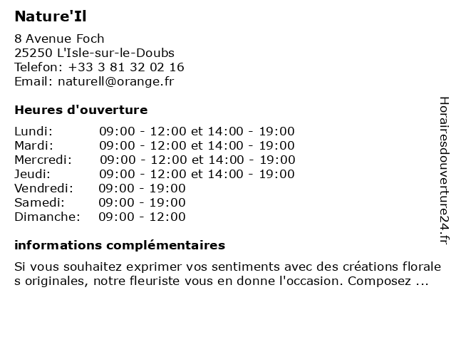 | Mercredi | 09:00-12:00 et 14:00-19:00 |