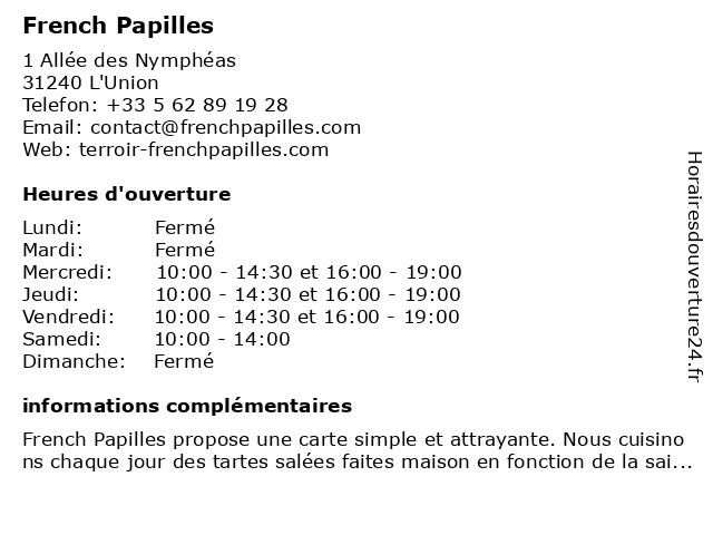 2 Roulez Papilles (Distance: 5,50 km) 24 Rue Matabiau, 31000 Toulouse bar, bistro, bistrot, brasserie, café, papilles, pub, restaurant, restauration, resto, roulez 3 French Coffee Shop (Distance: 5,88 km) 52 rue Alsace Lorraine, 31000 Toulouse bar, café, coffee, espresso, french, salon, shop, thé 4 French Yash Models (Distance: 6,66 km) 7 Rue des Changes, 31000 Toulouse agence, french, mannequins, models, modèles, publicitaires, yash 5 French Caprices (Distance: 6,81 km) 22 Rue Des Filatiers, 31000 Toulouse caprices, french, restaurants 6 French Collection (Distance: 6,92 km) 28 rue des Polinaires, 31000 Toulouse boutique, collection, french, magasin de collection, meubles de palette, objets d'art. |