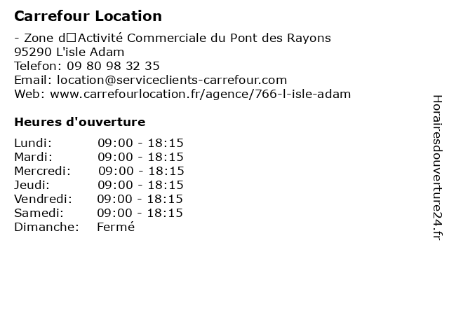 1 Carrefour Location (Distance: 9,65 km) - Route de Royaumont, 95270 Viarmes agence, carrefour, location, utilitaires, véhicules 2 Carrefour Location (Distance: 13,19 km) - Le Clos Pontcel, 95270 Luzarches agence, carrefour, location, utilitaires, véhicules 3 Carrefour Location (Distance: 13,23 km) 66 boulevard Bordier, 95370 Montigny Les Cormeilles agence, carrefour, location, utilitaires, véhicules 4 Carrefour Location (Distance: 13,24 km) - route De Crouy, 60530 Neuilly-en-Thelle carrefour, location, services, utilitaire, voitures 5 Carrefour Location (Distance: 13,59 km) 20 Avenue Robert Schumann, 95350 Saint-Brice-sous-Forêt agence, carrefour, location, utilitaires, véhicules 6 Carrefour Location (Distance: 15,68 km) 79 Avenue de la Libération, 60260 Lamorlaye agence, carrefour, location, utilitaires, véhicules |