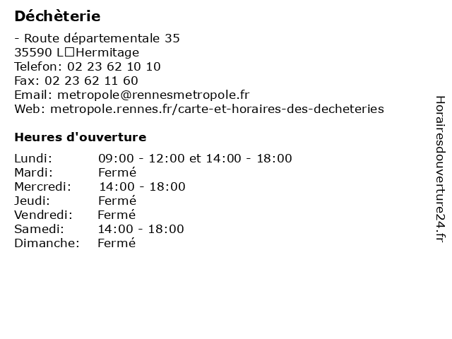 1 Déchèterie (Distance: 2,79 km) - La Petite Fosse, 35740 Pacé collectes, decheterie, déchets, déchèterie, trie sélectif 2 Déchèterie (Distance: 3,24 km) - Rue de la Perrière, 35590 Saint-Gilles collectes, decheterie, déchets, déchèterie, trie sélectif 3 Déchèterie (Distance: 7,75 km) - Rue de la Sénestrais, 35520 La Chapelle-des-Fougeretz collectes, decheterie, déchets, déchèterie, trie sélectif 4 Déchèterie (Distance: 8,23 km) 2 bis Rue André et Yvonne Meynier, 35000 Rennes collectes, decheterie, déchets, déchèterie, trie sélectif 5 Déchèterie (Distance: 8,70 km) 5 Le Haut Painluc, 35850 Gévezé collectes, decheterie, déchets, déchèterie, trie sélectif 6 Déchèterie (Distance: 11,91 km) - la Noë Huet, 35830 Betton déchèterie, gravats, huiles usées, la réception des déchets et écocentres, les appareils électroménagers, les déchets verts, papier et carton en quantité  |