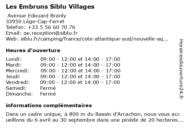 1 Camping Les embruns (Bar-Snack-Restaurant - basse saison) (Distance: 0,29 km) - Avenue Edouard Branly, 33950 Lège-Cap-Ferret bar, basse, camping, embruns, hebergement, les, restaurant, saison, snack, tourisme 2 Camping Les embruns (Bar-Snack-Restaurant - haute saison) (Distance: 0,29 km) - Avenue Edouard Branly, 33950 Lège-Cap-Ferret bar, camping, embruns, haute, hebergement, les, restaurant, saison, snack, tourisme 3 Camping Les embruns (Réception haute saison) (Distance: 0,29 km) - Avenue Edouard Branly, 33950 Lège-Cap-Ferret camping, embruns, haute, hebergement, les, réception, saison, tourisme 4 Camping Les embruns (Réception basse saison) (Distance: 0,29 km) - Avenue Edouard Branly, 33950 Lège-Cap-Ferret basse, camping, embruns, hebergement, les, réception, saison, tourisme 6 Les Villages d'Or (Distance: 33,66 km) 105 Allée des Dunes, 33127 Saint-Jean-d'Illac d'or, les, villages |