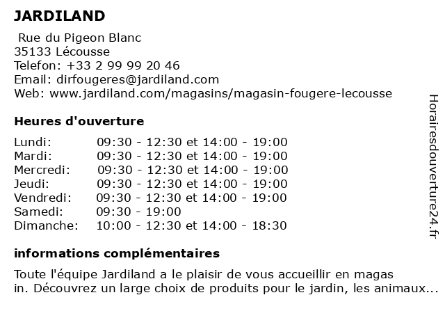 | Mardi | 09:30-12:30 et 14:00-19:00 |