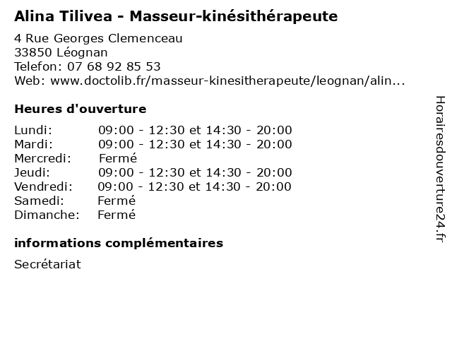 Lundi | 09:00-12:30 et 14:30-20:00 |