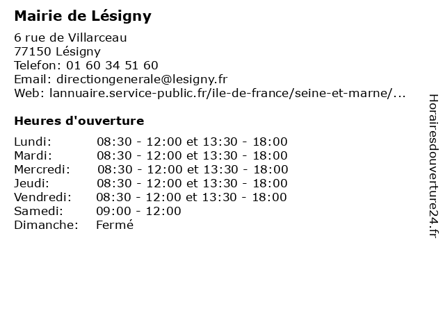 | Mardi | 08:30-12:00 et 13:30-18:00 |
