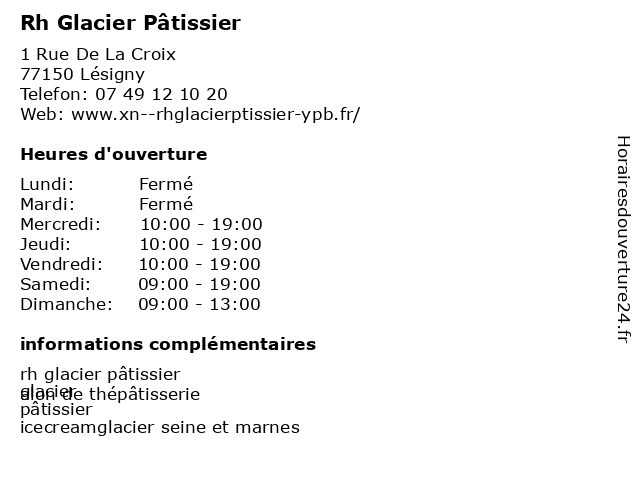 | Lundi | Fermé |