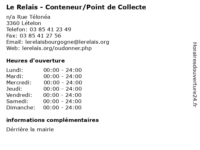 Termes de recherche pour Le Relais - Conteneur/Point de Collecte:relais, le, de, vêtements, point, collecte, dons, conteneur/point |