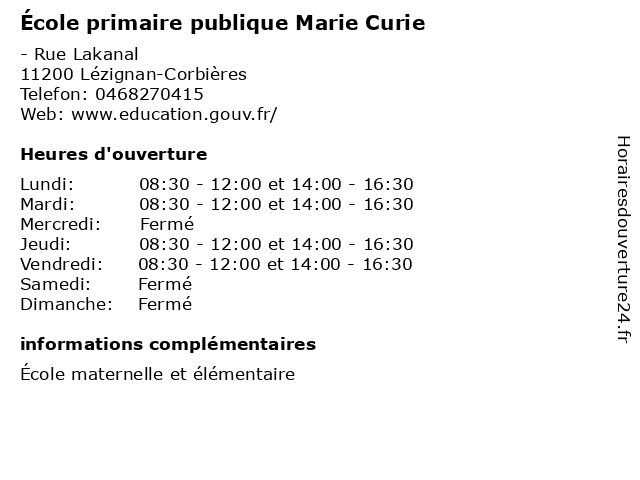 | Mardi | 08:30-12:00 et 14:00-16:30 |