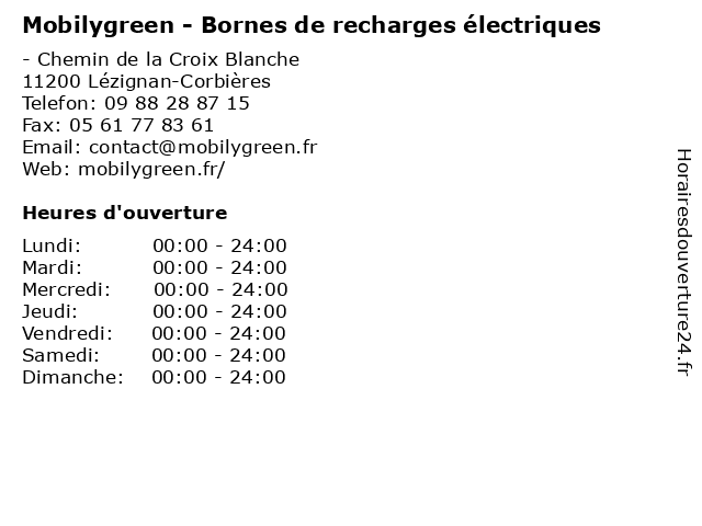 | Samedi | 00:00-24:00 |