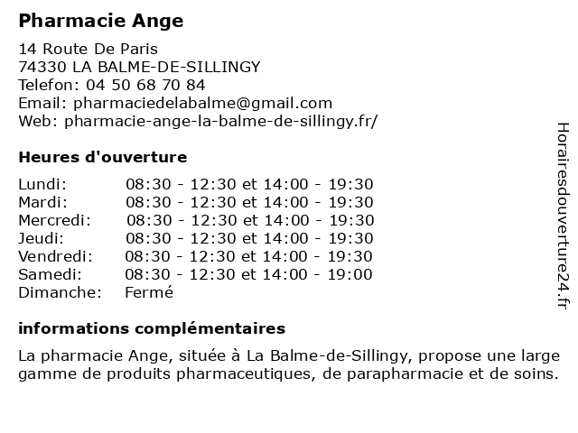 | Lundi | 08:30-12:30 et 14:00-19:30 |