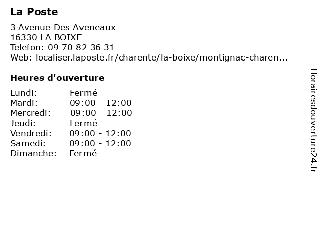 1 La Poste (Distance: 5,57 km) 6 Rue Bouffanais, 16560 Tourriers agence, colis, courriers, expédition, la, postale, poste, relais 2 La Poste (Distance: 6,80 km) 9 Place de la Liberté, 16560 Anais agence, assurance, banque, banque postale, bureau de poste, chronopost, colis, courrier, dps, expéditions internationales, la, point, postale, poste, relais, timbres, téléphonie, ups, western union 3 La Poste (Distance: 7,11 km) 3 Place de la Mairie, 16430 Vindelle agence, assurance, banque, banque postale, bureau de poste, chronopost, colis, courrier, dps, expéditions internationales, la, point, postale, poste, relais, timbres, téléphonie, ups, western union 4 La Poste (Distance: 7,70 km) 3 place du 19 Mars 1962, 16170 Genac agence, assurance, banque, banque postale, bureau de poste, chronopost, colis, courrier, dps, expéditions internationales, la, point, postale, poste, relais, timbres, téléphonie, ups, western union 6 La Poste (Distance: 8,16 km) 1 place Guez de Balzac, 16430 Balzac agence, assurance, banque, banque postale, bureau de poste, chronopost, colis, courrier, dps, expéditions internationales, la, point, postale, poste, relais, timbres, téléphonie, ups, western union |
