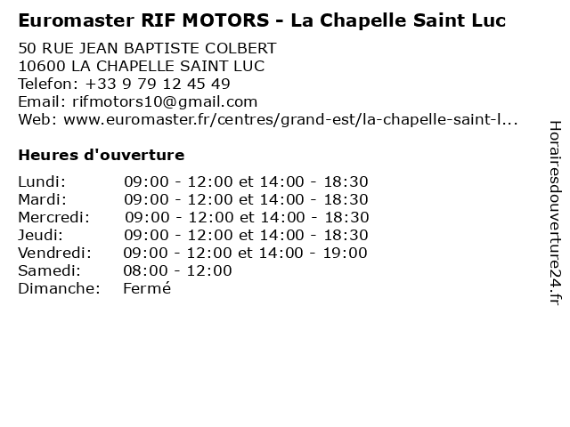 | Mardi | 09:00-12:00 et 14:00-18:30 |