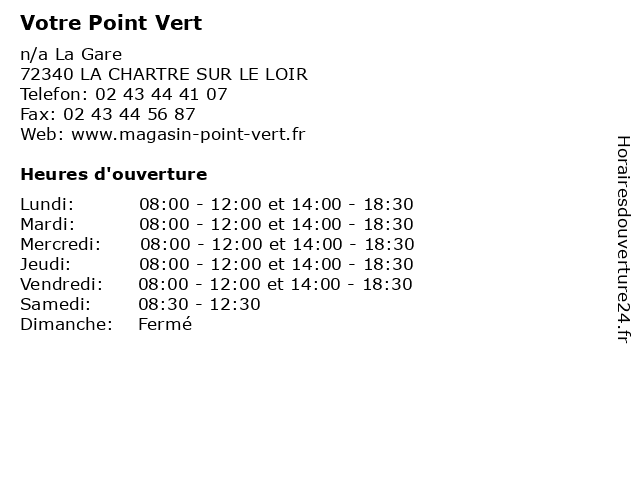 1 Votre Point Vert (Distance: 13,86 km) 51 Rue pasteur, 72500 CHATEAU DU LOIR animals, clothing, flower market, garden, garden tools, interior, pet, point, vert, votre 2 Votre Point Vert (Distance: 15,63 km) 8 Rue de la paix, 72150 LE GRAND LUCE animals, clothing, flower market, garden, garden tools, interior, pet, point, vert, votre 3 Pharmacie Du Chene Vert (Distance: 12,85 km) 47 Rue nationale, 72500 Montval-sur-Loir chene, du, pharmacie, vert 4 Votre Point Vert - De juin à mi-février (Distance: 16,53 km) n/a Route du Val de Braye, 72310 Besse Sur Braye animals, clothing, de, flower market, février, garden, garden tools, interior, juin, mi, pet, point, vert, votre 5 Votre Point Vert - De mi-février à mai (Distance: 16,53 km) n/a Route du Val de Braye, 72310 Besse Sur Braye animals, clothing, de, flower market, février, garden, garden tools, interior, mai, mi, pet, point, vert, votre 6 Magasin Point Vert (Distance: 17,18 km) - Moulin de l'image, 37370 Saint-Paterne-Racan animalerie, bricolage, jardin, magasin, maison, outillage, point, vert |
