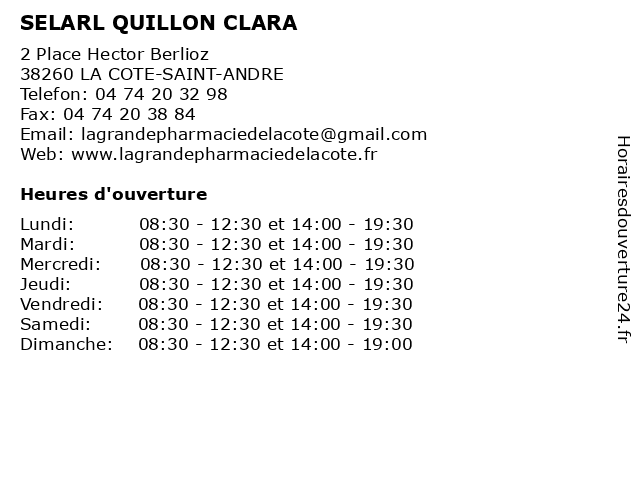 | Samedi | 08:30-12:30 et 14:00-19:30 |