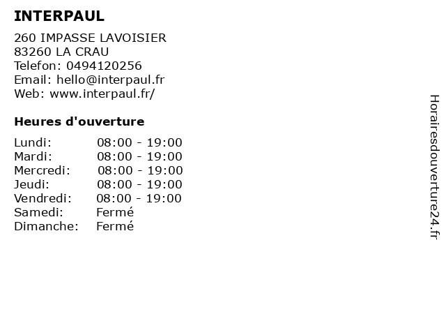 | Lundi | 08:00-19:00 |