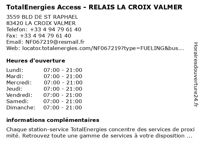 Termes de recherche pour TotalEnergies Access - RELAIS LA CROIX VALMER:relais, la, croix, access, total, valmer, gas station, station service, tankstelle, totalenergies |