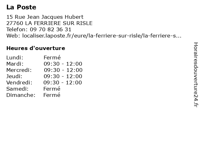 | Samedi | Fermé |