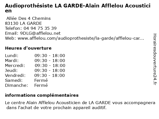 Termes de recherche pour Audioprothésiste LA GARDE-Alain Afflelou Acousticien:la, garde, alain, afflelou, acousticien, audioprothésiste, audiologie, clinique médicale |