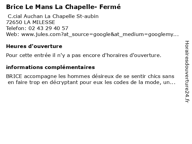 | Appeler Brice Le Mans La Chapelle- Fermé | |