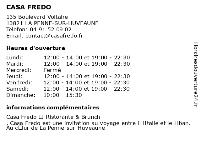 Samedi | 12:00-14:00 et 19:00-22:30 |