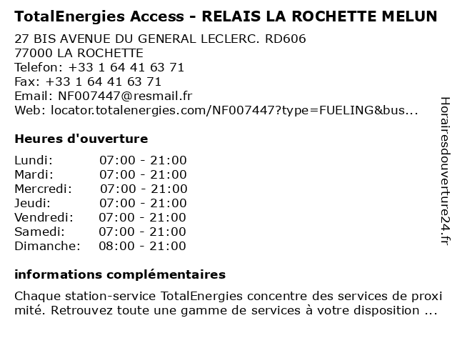 | Termes de recherche pour TotalEnergies Access - RELAIS LA ROCHETTE MELUN:relais, la, melun, access, total, rochette, gas station, station service, tankstelle, totalenergies |