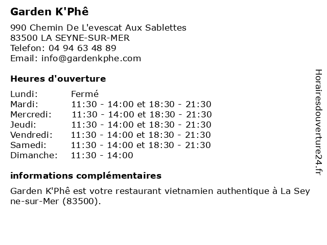 | Samedi | 11:30-14:00 et 18:30-21:30 |