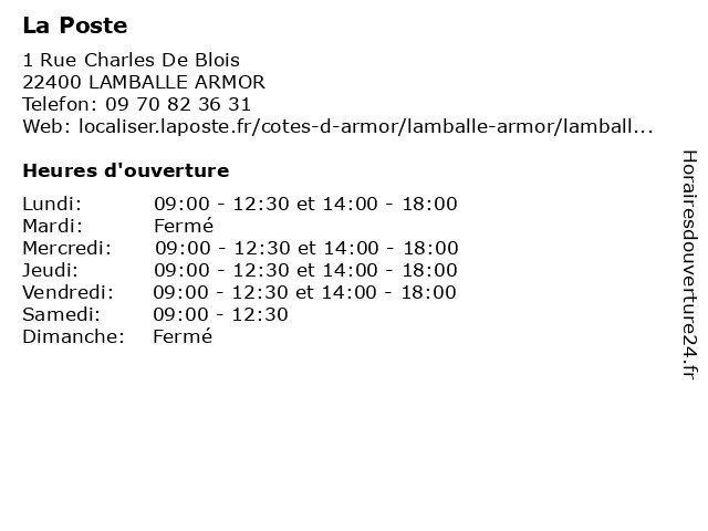 | Lundi | 09:00-12:30 et 14:00-18:00 |